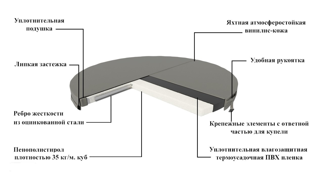 Если вы приобретаете купель, то вам необходимо знать, что она будет требовать термоизолирующего покрытия воды. Испарение от горячей воды, особенно в том случае, если на улице минусовая температура, является очень большим, соответственно, теплопотери будут такими же. Термокрышка способна помочь этого избежать, уменьшить теплопотери и загрязнение воды в купели. Такую термокрышку вы можете приобрести у нас, она уменьшает время нагрева воды в купели, а также может сохранить температуру нагретой воды до 2 суток.