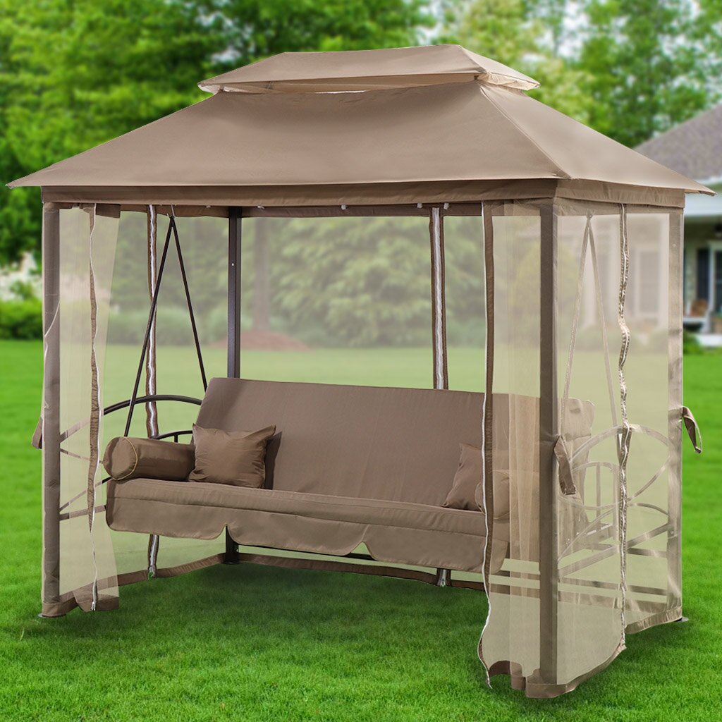 У нас вы можете приобрести тент, предназначенный для садовых трёхместных качелей с двойной крышей Green Days, тент двойной, он проветривается. Предназначен данный тент для качелей, размер которых составляет 252 х 170 х 245 см. Данный тент выполнен в бежевом цвете, благодаря данному тенту вы будете надёжно защищены от осадков и солнечных лучей.