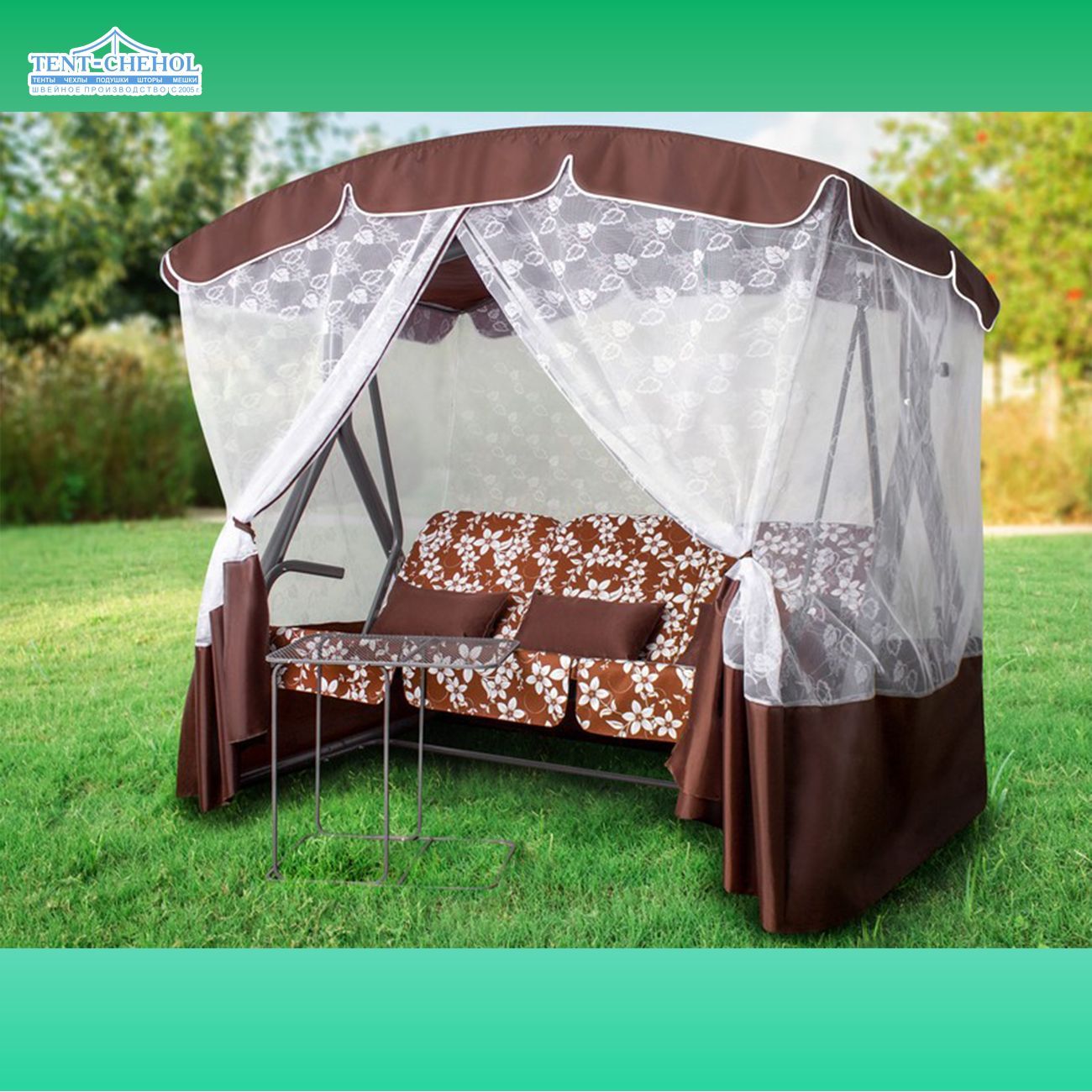 Тент и шторы для качелей Элегант Премиум 600D, шоколадный, 207х143х195
