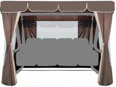 Тент – это красивое оформление садовых качелей, этот материал частично защищает от воздействия погодных условий. Идет в комплекте с мебелью, при его серьезном повреждении обшивку можно заменить, выбрав в каталоге подходящий вариант. Подробные характеристики представлены в описаниях к товарам на этой странице – ознакомьтесь с этой информацией и оформите заказ.
