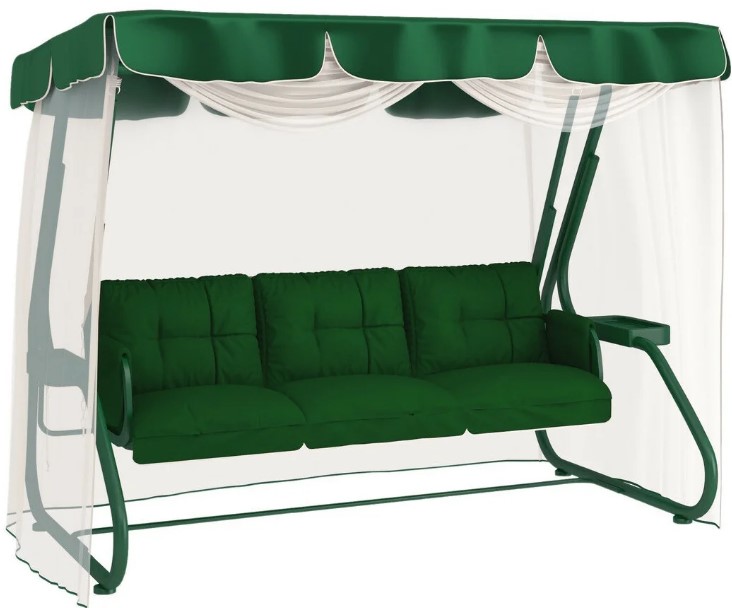 У нас вы можете купить комплект для садовых качелей Leset Астра. В комплект входит тент и москитная сетка, тент выполнен в зелёном цвете, он водонепроницаемый. Подойдёт данный комплект для размеров каркаса 228,4 х 146,5 х 170 см, он предназначен для защиты от солнечных лучей и осадков, а москитная сетка способна защитить от насекомых. При необходимости тент можно с лёгкостью снять или надеть, а также очистить обычной влажной тряпкой. В том случае, если у вас остались вопросы, вы всегда можете задать их нашим менеджерам, они с радостью на них ответят и помогут вам.