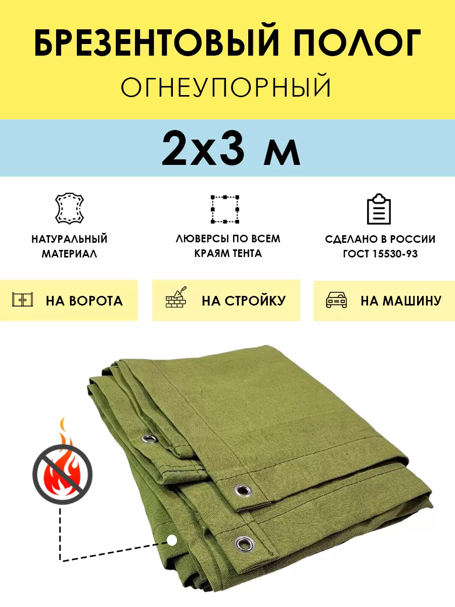 Купить Полог брезентовый огнеупорный 2x3 м, с люверсами (стандарт) цена 1850 руб. в Москве и СПб с доставкой по России