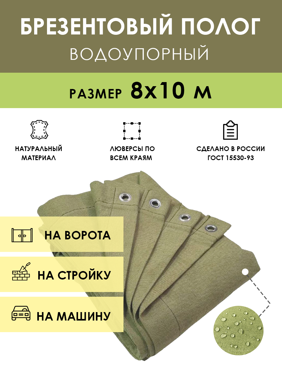 Краткое описание «Полог брезентовый водоупорный 8x10 м, с люверсами (стандарт)»